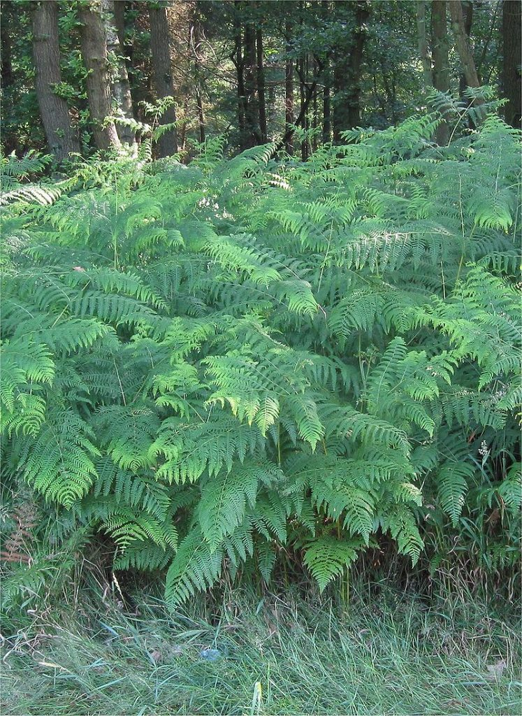 Also known as eagle fern, bracken fern is a herbaceous perennial and a member of the Dennstaedtiaceae family that includes 10 genera and 240 species of ferns. It is one of the most abundant ferns in the world and native to most of North America where it grows in a variety of habitats including open woodlands, meadows, savannas, thickets, marshes, burned areas and roadsides. Bracken is a vigorous plant and can become invasive because of its creeping rootstock. The fronds are used as thatching for houses, for fodder, and historically as a vegetable in Korea, Japan, Russian Far East, and parts of China although they contain carcinogens. Photo Credit Rasbak Wikimedia Commons