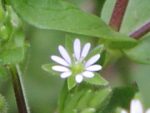 Description: With a shallow fibrous root system, mouse-ear chickweed is a low growing plant with thin hairy stems that grow six the eighteen inches long. They spread at the base but turn up at the tips and root at the nodes when in contact with the soil. The oval to elliptical , one inch long leaves are dark to gray-green and are attached directly to the stem without petioles. The small white flowers appear in terminal clusters from spring to fall and have five petals that are notched at the tips and five green sepals the same length as the petals. The flowers give way to seed pods containing an abundance of seed so that a single plant can produce 10,000-15,000 seeds. Plants spread by both seeds and stem roots.