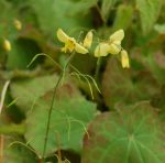 Native to mountain woodlands of northern Africa, this evergreen herbaceous perennial is a member of the barberry family, Berberidaceae, that also includes nandina, mahonia, and twinleaf. It grows up to 12″ high and spreads by rhizomes to produce a clump up to 18″ wide. The compound leaves are carried on wiry stems and have three glossy oval leaflets up to 3″ long and with spiny margins. The leaftlets are tinted bronze when young but turn green with age. In spring up to 25 yellow flowers appear in clusters just above the foliage. The flowers are up to 3/4″ across and have short bronze spurs. Plants are drought tolerant once established and do well in the shade as ground covers, edgers, and in rock and woodland gardens. The genus name, Epimedium, is the Greek name for a plant unrelated to this genus. The specific epithet, perralderianum, honors French naturalist Henri Rene le Tourneux de la Perraudiere (1831-1861) who collected plants in the Canary Islands and North Africa. Other common names include barrenwort, bishop’s mitre and fairy wings.