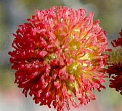 Also known as Buttonwood, this deciduous tree is native to California where is grows in moist sites. It is a member of the sycamore family (Platanaceae), a small family with only one genus and eight species. In their natural habitat they often have picturesque shapes with a gnarled double trunk and contorted wide-spreading branches. The reddish-brown bark is exfoliating to create patterns of white, gray, and green. The leaves are palmately lobed with three to five pointed lobes and are up to nine inches long and ten inches wide. They are soft light green above, and lighter green with yellow hairs below. In the fall the leaves turn brown and sometimes persist on the tree until early spring. The red male and female flowers appear in racemes on the same tree in late winter and spring and the female flowers give way in summer to clusters of dark brown, golf ball sized, aggregate fruits of achenes and remain on the tree into fall. Plants tolerate heat, smog, and some wind although the branches are brittle and may snap in high winds. The pollen and hairs on the leaves can cause nasal irritation so trees are best used away from patios and heavily used areas.