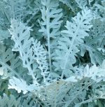 Also called silver dust, this herbaceous annual or tender perennial sub-shrub is native to the Island of Capraia in Italy and is a member of the aster family, Asteraceae, that also includes daisy, yarrow, and lettuce. It grows 6-24″ tall and has silvery gray-green leaves that are pinnately dissected and downy on both surfaces. The leaves are 6-8″ long and arch away from the central stem. The thistle-like flowerheads appear in the spring and fall, are purple, and often have enlarged outer florets. The plants are grown for their foliage and the flowerheads are often removed to promote vegetative growth. Dusty miller is perennial in zones 8 and warmer and is a good choice for use in a border especially as an edger, with bright colored annuals. The genus name, Centaurea, is from the Greek word kentauros meaning centaur and refers to the myth that a plant in this genus healed the centaur Chiron, a half-man- half horse creature of Greek mythology. The specific epithet, cineraria, is from the Latin word cinereus meaning ash colored and refers to the appearance of the leaves.