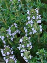 Also called English thyme, this well branched aromatic evergreen shrub is native to the western Mediterranean region to southern Italy. It is a member of the mint family, Lamiaceae, that also includes basil, rosemary, and beebalm. Plants grow 3-12” tall and have a woody base and ¼” –1/2” long, lanceolate, gray-green leaves with margins rolled under. The ¼” tubular lilac to pink flowers are carried in whorls in small terminal clusters from late spring to early summer. Thyme works well with almost any food and is considered one of the fines herbes of French cooking. Harvest before it blooms and use it in stews, soups, bread, salads, make herbal butter, or use a sprig as a garnish. It will be an asset in or on almost any dish you serve up. This kind of thyme is easy to grow and doesn’t need pampering or a lot of attention. It is even said to repel cabbageworms and whiteflies as well as enhance the growth of tomatoes, potatoes and eggplant. Bees love the flowers so you might want to consider setting up a beehive nearby.