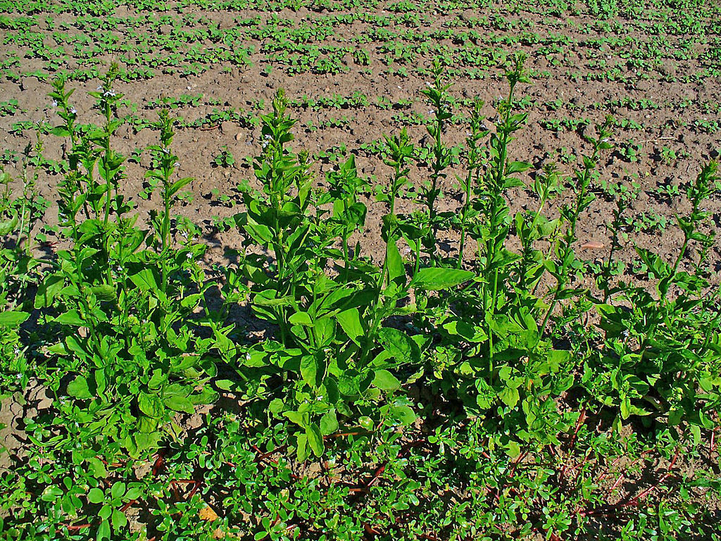 Also known as puke weed, this herbaceous annual or biennial is native to eastern North America from southeastern Canada, south to Alabama and west to Kansas, where it grows in fields, woods, and waste places. It is a member of the bellflower family, Campanulaceae, that also includes balloon flower (Platycodon), and ladybell (Adenophora). The plant grows 6-40″ tall from a taproot and has erect stems usually covered with bristly white hairs. The stem may be unbranched or branched in the upper portions and carries alternate, lanceolate to ovate leaves that are 2-3″ long and have toothed margins. From mid summer to fall, racemes of tubular, pale blue to white flowers appear but only 1-2 flowers bloom at a time. The flowers are about 1/3″ long and have a yellowish base with tufts of white hairs, a 3-lobed lower lip and 2-lobbed upper lip, and calyx with 5 narrow prong-like lobes. The fruit that follows is a papery inflated capsule 1/3″ across, and contains numerous tiny translucent, golden brown seeds. The nectar attracts small bees, but the acrid foliage is highly toxic and avoided by mammals. The leaves of Indian tobacco were smoked by Native Americans. The plant has been used in folk medicine in the past and is now used to deter smoking tobacco. The genus name, Lobelia, honors the Flemish botanist Matthias de Lobel (1538–1616). The specific epithet, inflata, is the Latin word meaning swollen or inflated and refers to the bladder like fruit. H. Zell Wikimedia Commons