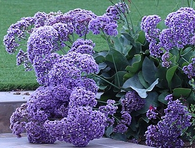 Also known as marsh rosemary and sea foam, this herbaceous perennial is native to the coasts of the Canary Islands but is valued as a garden plant worldwide. It is a member of the leadwort family, Plumbaginaceae, that also includes thrifts. The plant grows up to 3′ tall and has a woody rhizome that forms a basal rosette of leathery, oval to round leaves with long petioles and wavy margins. The leaf blade is 1.5-6″ long, 1-2 3/4″ wide, and pinnately veined. From spring through summer, stiff, branching reddish stems up to 18′ long bear 8″ wide domed clusters of small flowers with white petals and lavender, papery sepals that resemble petals. The flowers are attractive to butterflies, dry well and are beautiful in dried and fresh arrangements. The plants are tolerant of heat, drought, salt spray ,and wind so are an excellent choice for seaside gardens as well as for xeriscapes, containers, and butterfly and rock gardens. The genus name, Limonium, is from the ancient Greek word λειμών (leimṓn) meaning meadow, referring to the habitat of many species. The specific epithet, perezii, honors Dr. George V. Perez, a medical doctor who sent seed of several different statice species to Kew in 1902.