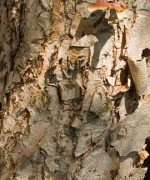 A native of low woods, streamsides, and riverbanks in the eastern part of the United States, from southern New England to northern Florida and west to Oklahoma and Kansas, river birch is a idea tree for wet or moist sites in sun to part shade. The upright tree is usually multi-stemmed and grows relatively quickly to 40-60 feet tall. The serrated leaves are shiny and medium green in spring and summer, turning pale yellow in the fall. The exfoliating bark may be cream or have a pinkish tinge at first but darkens to cinnamon brown as the tree matures. River birch can be used as a specimen, a shade tree, or as a hedge if cut back. Although it tolerates compacted soil it will not do well in an alkaline pH. Although it is more resistant to the pests and diseases that afflict other birches it is susceptible to ice damage. In the wild it can live for 60-75 years. River birch is a member of the birch family, Betulaceae, that also includes alders, hazels, and hornbeams. The genus name, Betula, is the classical Latin name for one of the genera. The specific epithet, nigra, is the Latin word for black/dark.