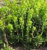 Native to the woodlands of Europe, Turkey and the Caucasus, this bushy evergreen herbaceous perennial is a member of the spurge family, Euphorbaceae, that also includes rubber plant, croton, and caster oil plant. It grows 18-24″ tall and slowly forms rounded mounds up to 18″ across. The leaves are slightly hairy, up to 2 ” long and are alternate on the lower stem but in whorls on the upper stems. They are shiny dark green during the growing season but take on a purplish red color hue when temperatures become cooler in fall. From late spring to early summer large sprays of small chartreuse yellow flowers appear subtended by yellow-green disc-like bracts. The flowers lack petals and sepals but the bracts are showy and last for months. Plants grow well in full sun to part shade and moist to dry soils so are especially valuable as ground cover under trees and in beds, borders and rock gardens. The flowering stems are attractive in flower arrangements. The genus name, Euphorbia, honors Euphorbus, the ancient Greek herbalist and personal physician of Juba II, King of Mauretania, an area in North Africa. The specific epithet, amygdaloides, comes from the Ancient Greek word ἀμυγδάλη (amugdale), meaning almond.