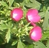 Purple poppy mallow is a herbaceous perennial native to much of the central part of the United States where they grow in dry soil in open places such as prairies and along roadsides. They are evergreen or semievergreen, mat-forming perennials and can be an attractive groundcover. Flowers are cup-shaped, 2.5 inches wide, and have magenta petals marked with white at the base. They are upward facing, borne singly on slender stems, and close in the afternoon. The roundish leaves are deeply lobed.