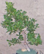 This native of central and west Africa is a medium-sized evergreen plant that is especially good for bonsai. The thick, dark green leaves are small and triangular. They resemble those of boxwood, hence the common and specific (bux-box, folia-leaf) names. The trunk is dark brown with thin and flexible branches that produce a naturally beautiful branching pattern. Flowers are produced in the axils of the leaves and are followed by small, inedible green fruits that are only 3/8” long and rarely ripen.