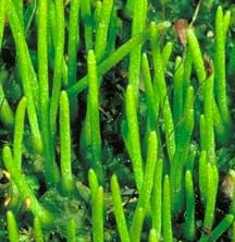 ClubmossPlants of the clubmoss (1,200 species), horsetail (20 species), and fern (12,000) divisions reproduce by spores but have specialized tissue for transporting water and nutrients. Their true roots, stems, and leaves with specialized conducting tissue allows them to grow much larger than mosses, hornworts, and liverworts. Clubmosses are evergreen and are popular as Christmas greens. Horsetails (20 species) contain silca and have been used as an abrasive. Both horsetails and ferns are sold as garden plants and used in flower arrangements.