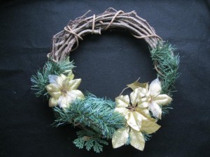 The directions are for one wreath but I made 18 all relating to a theme (birds). Each wreath had the same kind of flowers, poinsettias, but in different colors to go with the décor of the area in which they were located.