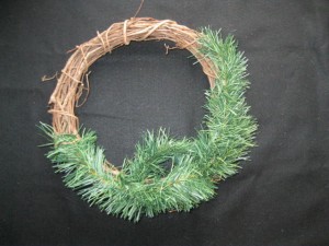 50” (approximately) artificial pine garland (or fresh greens if you have them)
