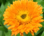 This short lived perennial is native to southern Europe and North Africa but has naturalized in much of Europe where it is grown as an annual. It is a member of the aster family, Asteraceae, that also includes daisies, sunflowers, and lettuce. The aromatic leaves are two to seven inches long and hairy. The single or double flowers are up to four inches across and may be yellow, orange, gold, cream or bicolored with dark centers. They appear from early spring to frost and were believed to be in bloom on the first day of every month, the Kalends in ancient Roman times, hence the genus name, Calendula. In the Middle Ages the plant was called Mary-bud and dedicated to the Virgin Mary because it seemed to always be in bloom on holy days. The flowers provide nectar and pollen for bees and butterflies, and the nectar attracts aphids which in turn attract ladybeetles, hoverflies, and lacewings. The seeds attract small birds in the winter. Although considered easy to grow in almost any kind of soil, pot marigold does not do well where summers are hot. In USDA zones 8-10 pot marigold can be grown for winter color Plants self sow. Both leaves and flowers can be used in cooking although the flowers are preferred.