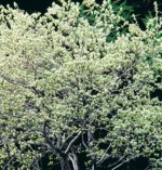 Suckering shadbush is a deciduous, multi-stemmed large shrub or small tree native to eastern North America from Canada to Alabama. It is a member of the rose family, Rosaceae, that also includes cherries, lady’s mantle, and pyracantha. It is grown for its flowers, summer fruits, and striking autumn color. In early spring before the leaves appear, masses of star-shaped white flowers are produced in drooping clusters. The lightly fragrant flowers are an important source of nectar for early-season bees and butterflies. The purple-black berries are attractive to many birds including robins, larks, jays, and woodpeckers. The one to three inch long leaves are dark green before turning orange-red in the fall.