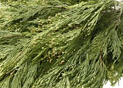 Incense cedar is another premium green that is pricey but very pretty with its golden buds and lacy foliage. The branches are flat and soft and look fabulous as an accent in any arrangement. You don’t need a lot of this one to add a distinctive element to a centerpiece but, alas, it has a vase life of only 9 days.