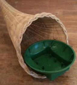 Cornucopia: made of wicker, twigs, or any other material that will accommodate a flower arrangement. A variety of these are available in craft stores (and second hand stores)