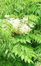 This deciduous small tree or shrub is native to eastern Russia, Japan, China and Korea but is grown in the US where it has become invasive in some areas due to its large suckering root system. The spiny stems carry, binnately compound leaves 3-5.5 feet long that are dark to mid-green in summer and turn yellow to reddish purple in the fall. The small (1/8”) white to pink flowers are produced in August in billowy terminal panicles twelve to eighteen inches across. They are attractive to bees and are followed by black spherical fruits. Plants are drought and pollution tolerant but needs protection from wind that can damage their leaves. Flowers, leaves, and preserved berries are attractive in arrangements. A variegated form, A. elata ‘Aureovariegated, has larger and more eye-catching leaves and is best used with restraint.