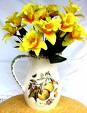 When arranging the flowers rinse off the daffodils that will be combined with other kinds of plant material. The use of foam in mixed arrangements will help contain any toxic sap that remains in the daffodils. Daffodils are especially pretty with other spring blooming plants such as hyacinths and iris. For the longest vase life, arrange the daffodils alone in a few inches of water-beach mix with no foam.