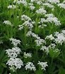 A more popular garden plant is Galium oderatum, sweet woodruff. A native of Europe, North Africa and Asia, it smells like new-mown hay and its dried leaves were used in Elizabethan England for wreaths, garlands, sachets, and tussie-mussies. In Scandinavia sweet woodruff was used to make cordials in the Middle Ages while in Germany sweet woodruff is used to flavor May wine.