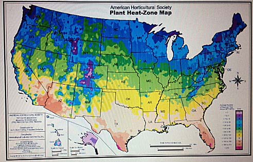 All of us who garden in the southern part of the country have probably noticed that high temperatures can be as much of a problem as low temperatures especially in times of drought and/or high humidity. Lucky for us the American Horticultural Society came up with the AHS Plant Heat-Zone Map that is similar to the USDA Hardiness Map. The map shows 12 zones based on the average number of days each year that a region has temperatures over 86 degrees, a critical temperature for plant growth. At this temperature plants begin to deteriorate even though you might not notice any change at the time. Signs of heat damage include dropping leaves, withered flower buds, white or light green areas in the leaves, and stunted growth. Zone 1 of the Heat-Zone Map has less than one heat-day (temperatures over 86o F) while Zone 12 has more than 120 heat days. Many factors influence the effect of heat on the plants such as water, light, soil pH, humidity, and air movement.