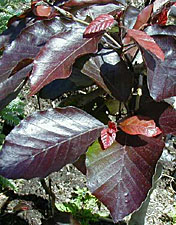 5. Largest tree with purple leaves. Fothergill (Fothergilla gardenii) Buckeye (Aesculus pavia) Privet (Lugustrum japonica) Purple Beech (Gacus sylvantica purpurea) |