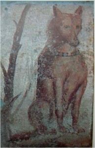 A caste of a dog that was chained in the garden at the time of the eruption gives us proof of the presence of dogs.