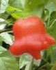 Also known as Nepalese Bell, Chapeau de Frade (friar’s cap), and orchid pepper, this unique pepper from Brazil is one of a group of peppers known as Aji’s that are native to the Peru and Bolivia where they have grown for 2,500 years and were favored by the Incas. It is a member of the nightshade family, Solonaceae, that also includes eggplant, tomatoes, and potatoes. The fruits of biretta vermelha are typically about three inches wide and shaped like the four cornered cap worn by cardinals, hence the common name. Although the shape first catches the eye, the taste is one of the pepper’s best quality, with its flavor of hops blossoms. The fruits have a Scoville rating like that of cayenne pepper although the hotness can vary with the plant and the individual pepper.