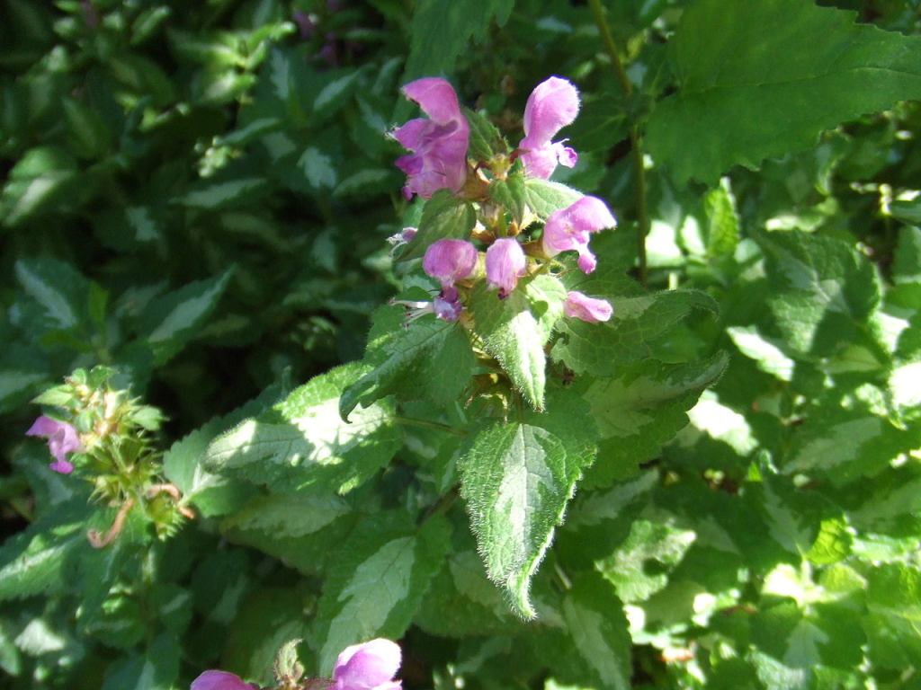 The name “Madonna’s Milk” for Lamium maculatum probably arose from Christian folklore and medieval plant symbolism. The white markings on the leaves of spotted dead nettle probably suggested drops of milk to medieval Christians who often named plants after religious figures or events due to their perceived appearance. Milk is often associated with motherhood and nourishment which suggests the Virgin Mary’s role as the mother and nurturing caretaker of Jesus, and the name “Madonna’s Milk” arose for the plant.
