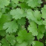 Also known as cilantro and Chinese parsley, coriander is a warm weather annual and a member of the carrot family, Apiaceae, that also includes celery, parsley, and Queen Anne’s lace. It is native to southern Europe and the eastern Mediterranean but is widely cultivated elsewhere as a culinary herb including the US, mostly in California. Growing 2-3′ tall, plants form a basal clump of pinnately compound leaves with the lower on roundish and lobed, the upper ones finely divided and fern like. The very small white to pinkish flowers appear on short stalked umbels 2″ across and are followed by brownish yellow, spherical seeds. The leaves, stems, roots and seeds are edible and popular in the cuisines of Mexico, south Asia, China, and Middle East. The leaves and stem have a citrusy sage taste to most people but a soapy taste to some. The roots have a similar taste but are also nutty and the seeds lack the sage flavor and are citrusy. Plants need fertile, light, well-drained soil and full to partial sun. They have a long tap root and do not transplant well so seeds should be sown in place. The genus name, Coriandrum, comes from the Greek word κορίαννον, koriannon, derived from Greek word κόρις, kóris , meaning bed bug and refers to the foul smell of the unripe fruit. The specific epithet, sativum, comes from Latin word meaning cultivated.