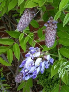 The American wisteria is slowly coming into bloom. The flowers are not as long and pendulous as the asian kind but the vine will rebloom.