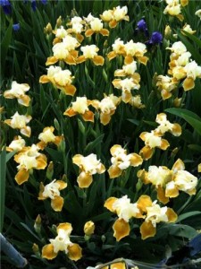 The garden with the iris beds continues to develop with a large mass of two tone yellow iris.