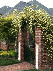 Lady Banks rose is covering the arbor to the secret garden giving a look of abundance.