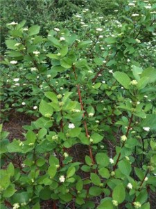I usually think of red twig dogwood as adding interest to the winter garden but it is blooming now and putting out attractive green leaves.