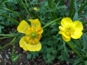 This wild butter cup is the first plant to blooming the yellow border and we decided to enjoy it rather than pull it out just now.