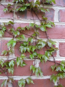 The Boston ivy is leafing out and the lovely pattern of the stems will be covered until late fall by shiny bright green leaves.