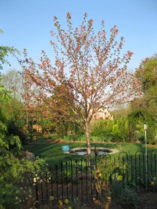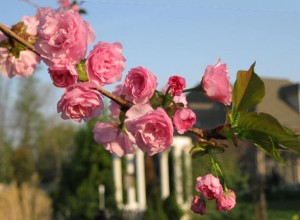 Unlike the Yoshino cherry that has single white flowers, the Kwanzan has pink double flowers that give the branches a soft fluffy appearance.