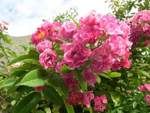 ‘Lillian Austin’ is one of my greatest joys. It was the ugliest bush I had ever seen and the salesperson had to do a real number on me to persuade me to buy it. She told me that it would be the most beautiful rose in my garden (on the ugliest bush) and I gave in and brought it home. I watched it grow in its awkward way and resolved to throw it out or give it away (who would want it?) at the end of this season but low and behold, it has come of age and is a decent looking bush still producing the most beautiful flowers in my garden. The flowers are pink but are suffused with lemon yellow at the base and open in multipeteled layers. You really have to see it real life to fully appreciate its beauty.