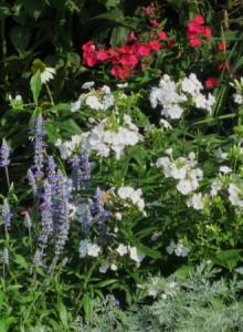 The phlox are also loving the heat and tolerating the humidity amazingly well with only some touches of mildew. My favorite phlox is ‘Bright Eyes, peaking through the lamb’s ear, one of the only clumps that has not melted out.