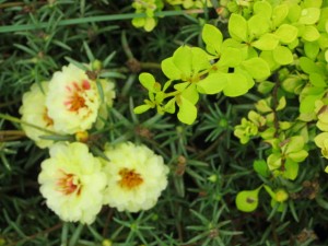 I have some a couple of yellow leaf barberries in two parterres that keep things lively with yellow portulaca.