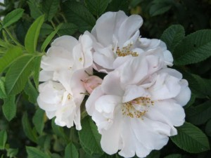 In spite of blackspot many roses are pumping out flowers. My rugosa rose, ‘Henry Hudson” has revived from its severe pruning last spring and has a nice display of flowers.