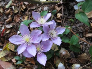 The clematis right outside the rose garden is producing a second show; the flowers are not as large as those in the spring but still very pretty and welcome.
