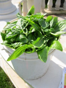 The basil, on the other hand is looking terrific and we are having a hard time using it all. I try to keep the tops picked at all times so the plants can’t produce flowers, thus maintaining the sweet licorice flavor. I think we will be having quite a bit of pesto dishes this week. Yummy!
