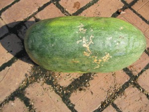 Is it a melon? It grew in an area where we grew Armenian cucumbers and musk melon last year. I think there was a bit of hanky pank there.