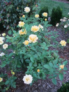 The floribunda ‘Julia Childs’ is full and bushy; a nice looking bush even when not blooming.