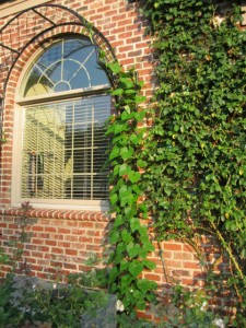 The vines have been very slow to get started but are blooming as the twin their way up the trellis.