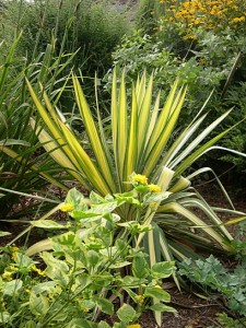 I paired a yellow varietaged lantana with ‘Golden Sword’ yucca (Yucca filamentosa) and black eyed Susan (Rudbeckia fulgida sullivantii ‘Goldsturm’)