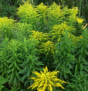 A mass of goldenrod still showing the chartreuse green of their buds creates a pleasing site.