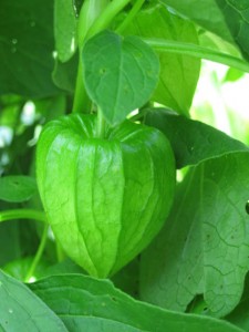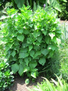 Last year I started Chinese lanterns and planted them in the formal garden in the fall out of desperation for a place to put them. Now they are growing large and flopping on the nearby plants and I wonder what I was thinking when I planted them there.