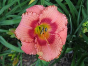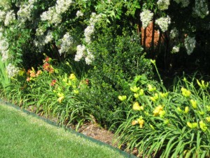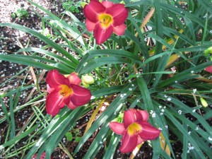 Last year I took out some of the daylilies that had become too aggressive and I replaced them with clumps that I bought from a couple of local daylily farms. They seem to be later than the ones already in the allee but no less beautiful. Here is ‘Strawberry Candy’