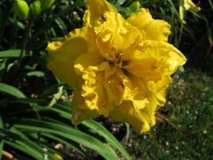 Three years ago I put in the daylily bed on the outside edges of the allee when a friend of a friend eliminated all her daylilies and I was the lucky recipient. One of the most beautiful is this golden yellow very double ruffled one.