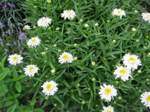 The crazy daisies are in full bloom and flooping on other plants. They don’t last long but the clump is very attractive while in bloom.